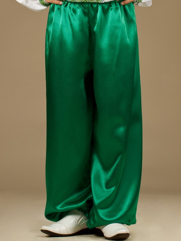 Українські зелені шаровари для хлопчиків та чоловіків - українські штани-шаровари - модель ШР3. Тканина атласна - крепсатин.