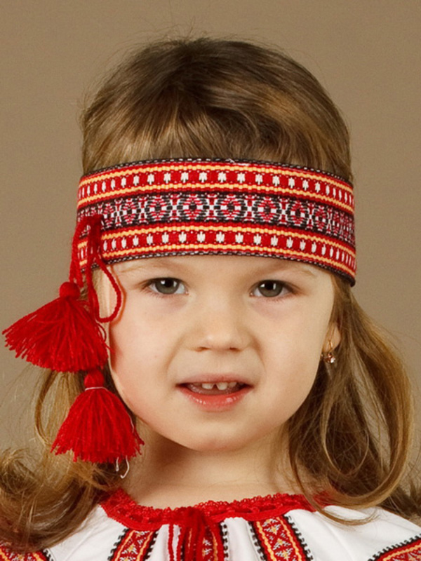 Вишита пов'язка на голову дитяча ПВ-1-2 з кутасиком. Підходить на будь-яку голову - регулюється шнурочком.
