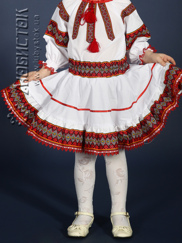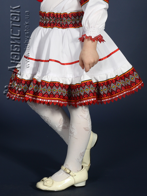 Українська вишита спідниця для дівчинки - модель С1-44. Вишивка ткана, червоними, чорними та білими акриловими нитками. Візерунок 44 - геометричний.