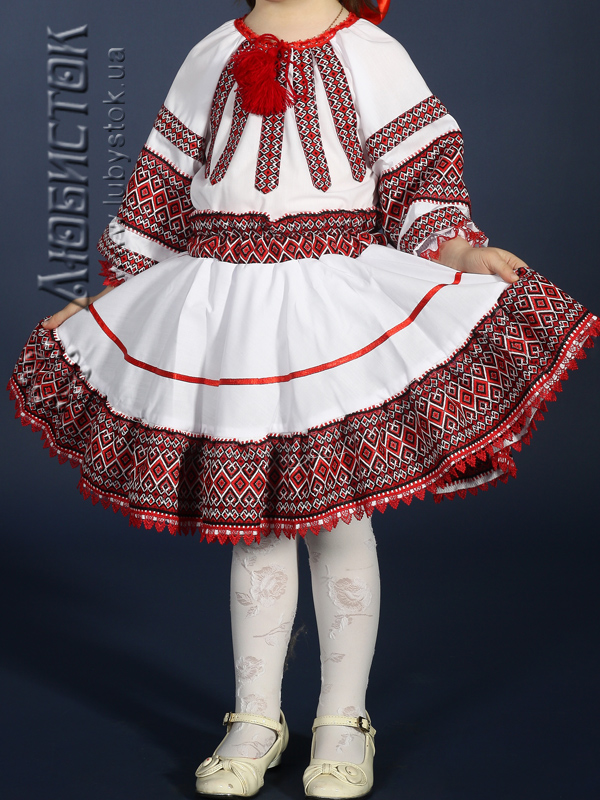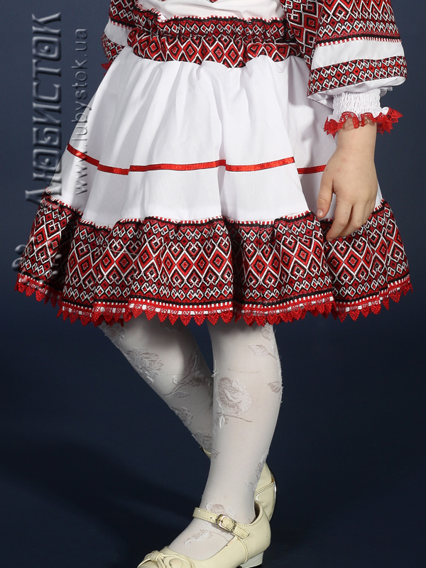 Українська вишита спідниця для дівчинки - модель С1-64. Вишивка ткана, червоними, чорними та білими акриловими нитками. Візерунок 64 - геометричний.