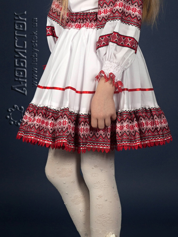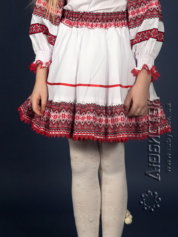 Українська вишита спідниця для дівчинки - модель С1-78. Вишивка ткана, червоними, чорними та білими акриловими нитками. Візерунок 78 - геометричний.