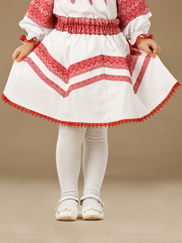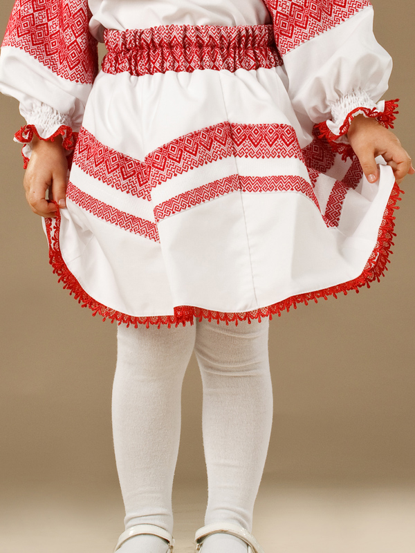 Українська вишита спідниця для дівчинки - модель С26-11. Вишивка ткана, червоними та білими акриловими нитками. Візерунок 11 - геометричний.