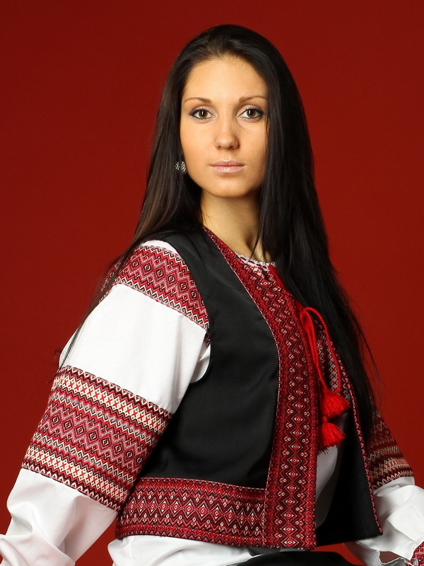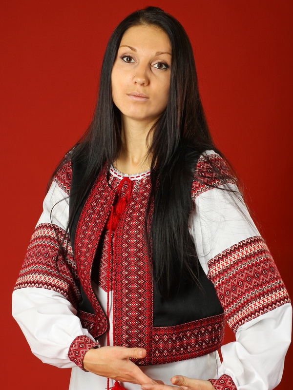 Жіноча вишита камізелька КМ 4-1. Тканина - чорний габардин. Вишивка жилетки червоно-чорного кольору. Жилетка-вишиванка чудово підійде для святкових подій та творчих виступів.