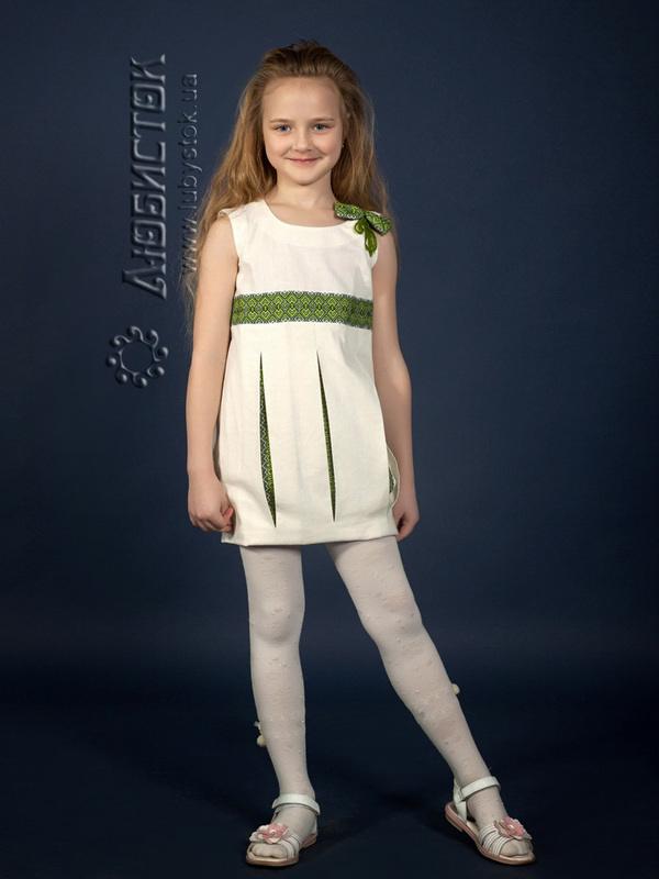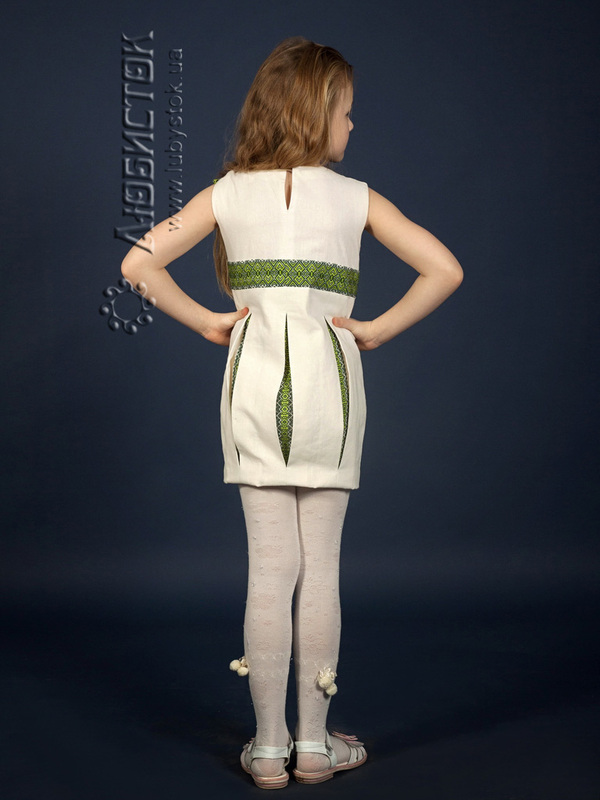Вишите плаття для дівчинки - модель ЖП 15-31 з нижньою частиною у формі тюльпана. Дизайнерська літня сукня для маленьких модниць з натурального льону та тканою вишивкою. Метелик на плечі та нижня частина сукні для дівчинки у формі тюльпана робить платтячко неординарним, ніжним та помітним. Дитяча сукня з колекції "Маленька любов" від Любисток - www.lubystok.ua.