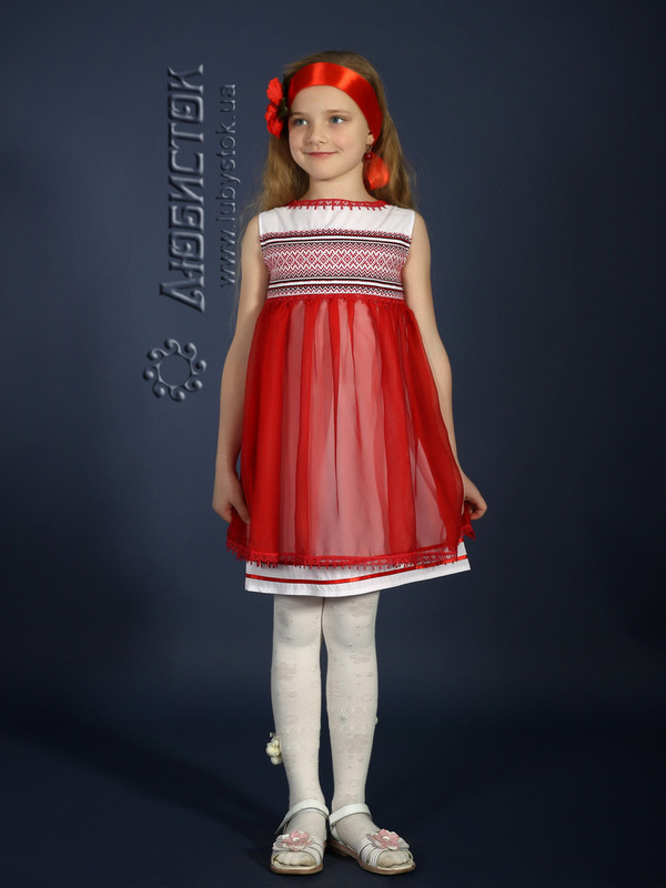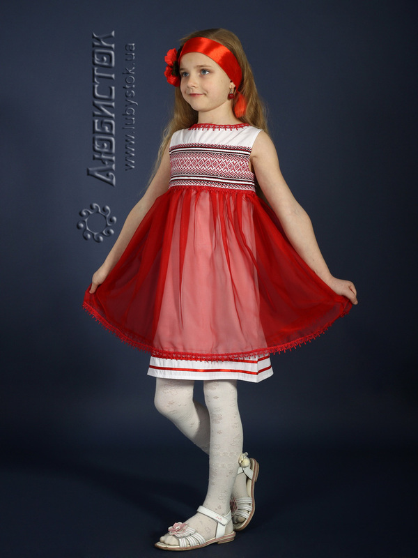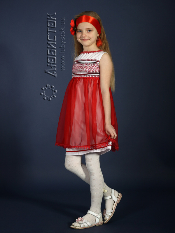Вишите плаття для дівчинки - модель ЖП 16-35. Яскрава дизайнерська сукня для маленьких модниць з вишивкою на грудях та червоним шифоном, що підкреслює легкість та оригінальність. Дитяча сукня з колекції "Маленька любов" від Любисток.