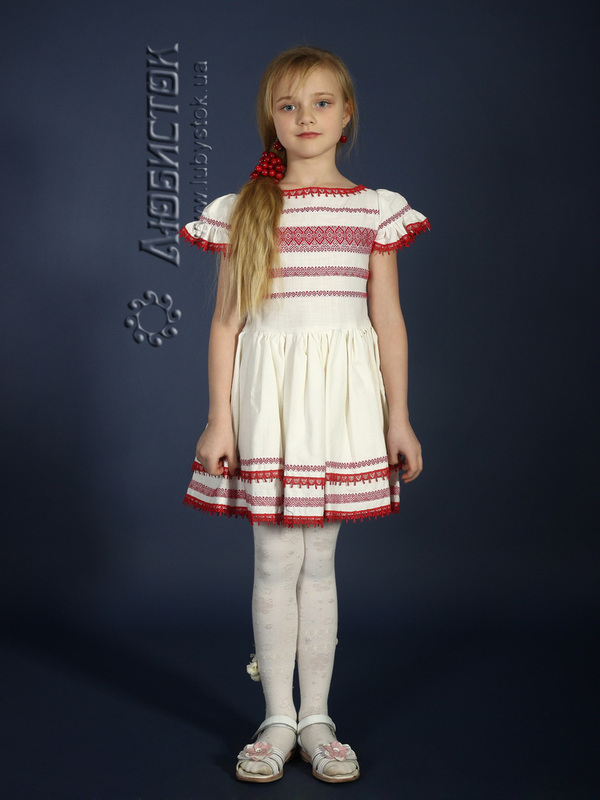 Тканина 100% льон, молочний. Вишивка ткана, червоними та білими акриловими нитками. Візерунок 11 - геометричний, може відрізнятись від зображеного на фото, але схожий.