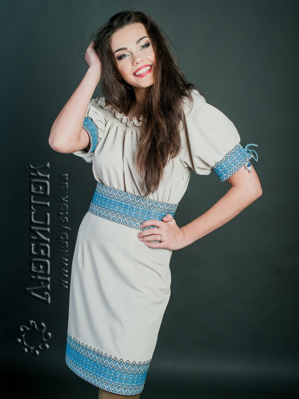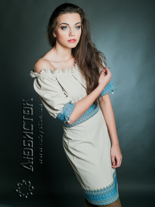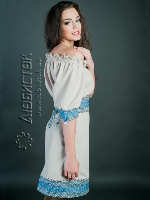 Стильна вишита сукня в ніжних біло-голубих тонах ЖП 36-28. Широкий вишитий пояс-корсет, низ плаття та рукава роблять акцент лише на чудових жіночих принадах, а все інше ховається за розумним кроєм. У такій сукні ви завжди почуватимете себе комфортно та вишукано. Виріз тут передбачений для трансформацій під Ваш настрій, адже оголивши плечі сукню можна перетворити на спокусливий вечірній наряд, не втрачаючи при цьому традиційності та колоритності. Тканина сукні – бежевий льон-тіар, який за рахунок вмісту у своєму складі різного типу волокон, забезпечує довговічність та легкість в догляді за такими речами. Залишайтесь вірною собі у своєму бажанні бути неповторною, а ми подбаємо про все інше.