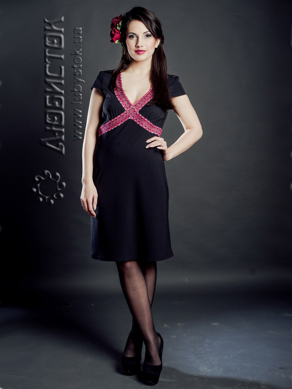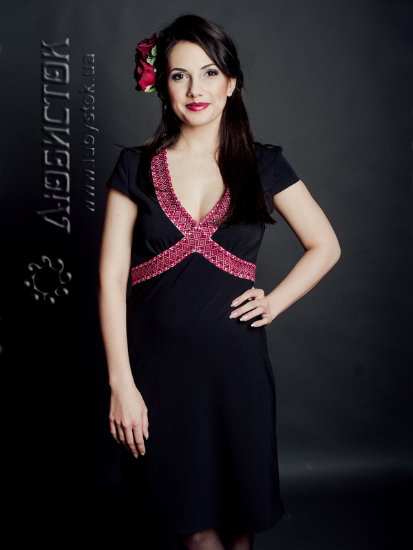 Чудова вишита сукня ЖП 49-47 вишуканого прямого крою до колін з чорного тіару на короткий рукав. Таке вбрання дуже вишукане у своїй простоті, адже традиційною біло-червоною вишивкою оздоблений лише ліф сукні. Такий варіант стане чудовим супутником як в офіс чи на ділову зустріч, так і на прогулянку. У цьому платті ви станете зіркою будь-якого вечора і безліч компліментів вам забезпечені. Накинувши болеро (які також представлені в нашому асортименті) ви зможете розширити функціональність такої сукні і носити за будь-якої погоди.