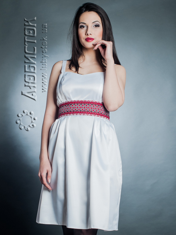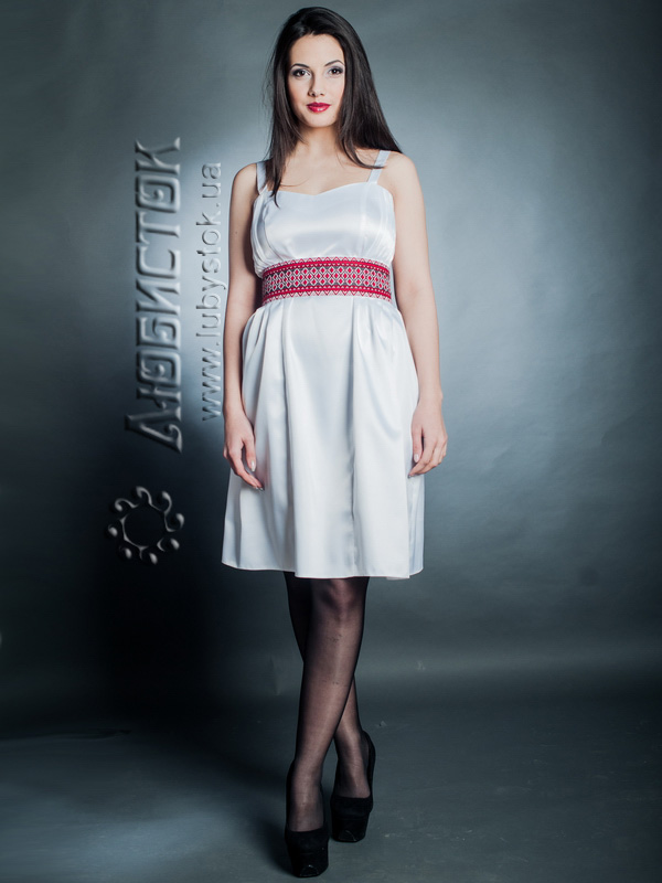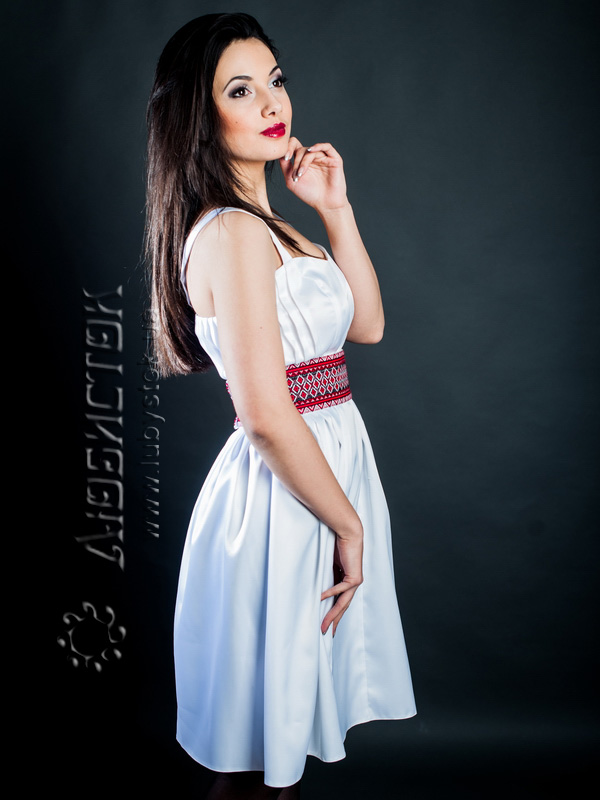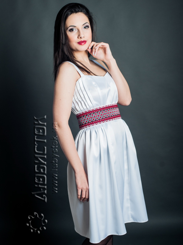 Вишукане вишите плаття ЖП 50-63 з королівського атласу. Його витонченість підкреслює широкий, вишитий у класичних українських кольорах поясок! Цей фасон є досить традиційним, тому стане чудовою окрасою власниць різних типів фігури! Сукня дозволить відчути себе королевою на будь-якому балу, адже у такому вбранні неможливо залишитись непоміченою. Водночас ненав'язливий візерунок дозволяє кожному проявити фантазію і доповнити образ аксесуари ми чи іншими елементами гардеробу, які з легкістю зможете відшукати у інших розділах нашого магазину! Залишайтеся неперевершеною завжди і всюди.