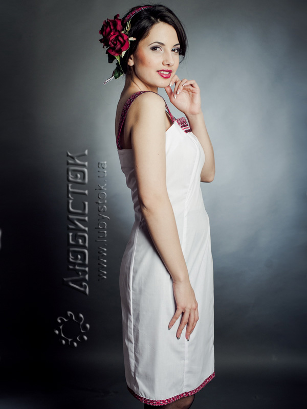 Вишукана у своїй простоті вишита сукня ЖП 57-49. Простий крій в талію дає змогу одягати таке плаття як на щодень, так і на свято. Ця модель цікава тим, що її можна удосконалити з допомогою аксесуарів. Фантазуйте і залишайтеся вірні собі!