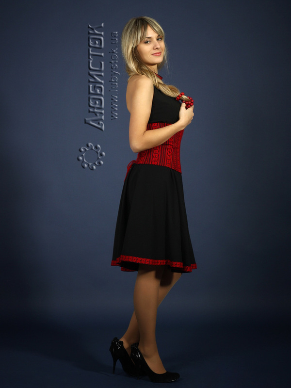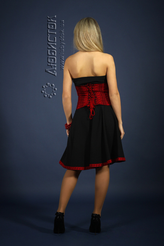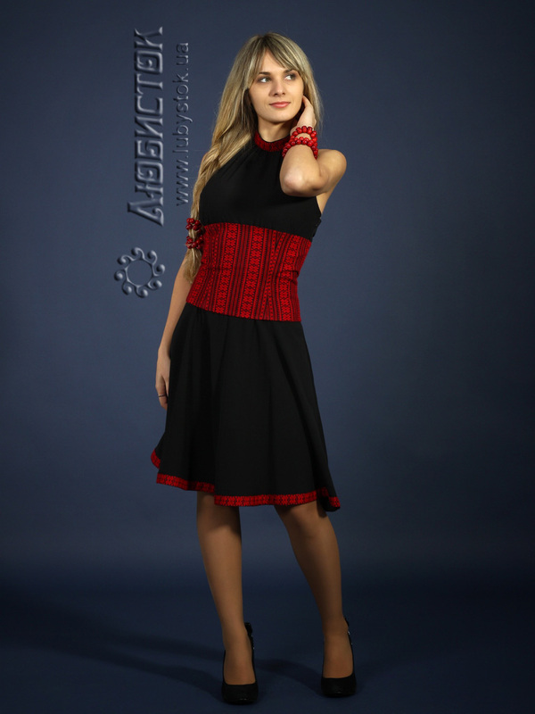 Ексклюзивна вечірня сукня ЖП 58-66 у стилі «Мерлін Монро» чорного кольору. Вишивку в цьому платті дизайнери запропонували червоного кольору, що робить образ дуже лаконічним і водночас вишуканим. Широкий масивний корсетний акцент на талії приверне увагу до вас, а розширений фасон спідниці, дозволяє себе відчути справді принцесою на балу. Зав'язки на спині допоможуть відрегулювати плаття під свою фігуру. Доповнює колоритний образ вишивка на горловині та нижньому краю сукні. А відсутність рукавів дасть змогу почувати себе комфортно навіть за умов спекотної погоди. Залишайтесь завжди неперевершеною, а ми Вам в цьому допоможемо.