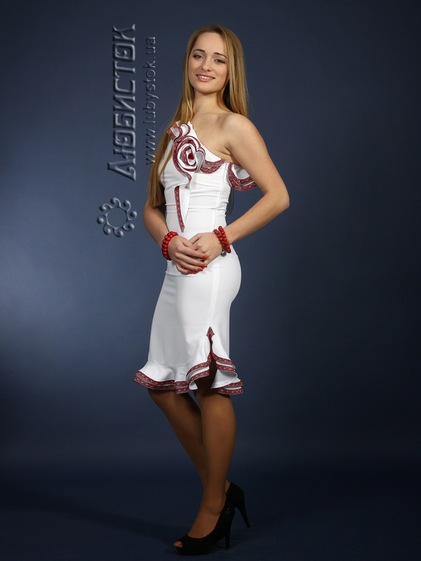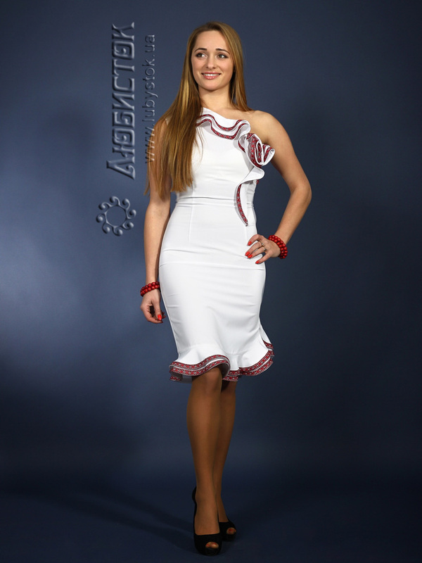 Чудовий неординарний фасон стильного вишитого плаття ЖП 65-49 припаде до смаку тому, хто не хоче загубитись в сірій масі. Біла основа з чорно-червоною вишивкою завжди виглядає органічно, а акцент сукні на одне плече з вишитим і складеним в оригінальний візерунок орнаментом та трішки розширеним і оздобленим такою ж вишивкою низом, стане свідченням хорошого смаку жінки. Таке плаття буде чудовим вбранням для будь-якої урочистої події і лише вигідно доповнить жіночу красу. Залишайтесь завжди в гармонії з собою та будьте неповторними.