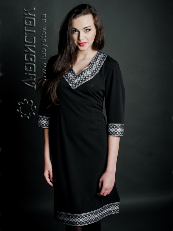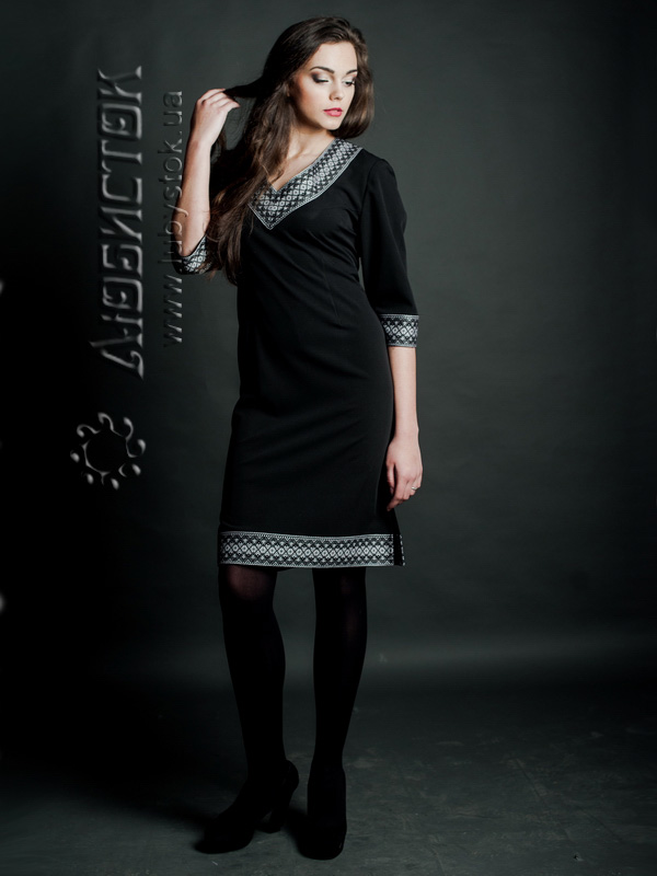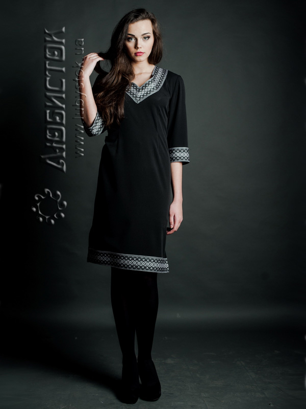 Стильна вишита сукня-футляр ЖП 69-05 дещо вільного крою з чорного тіару. Така тканина легка в догляді і практична. А продуманий фасон дозволяє купувати таке вбрання власницям навіть не дуже досконалої фігури. За рахунок довжини рукава в три чверті, плаття можна носити кожної пори року. А v-подібний виріз візуально витягне силует і зробить Вас ще стрункішою та привабливішою. Тут дизайнери запропонували широку вишивку, яка лише вигідно підкреслює основні достоїнства сукні, відволікаючи увагу від можливих недоліків фігури! Бажаєте оригінальнішого образу? Тоді просто доповніть вбрання аксесуарами з інших розділів нашого магазину. Будьте завжди на вершині модного олімпу і Залишайтесь вірними собі!