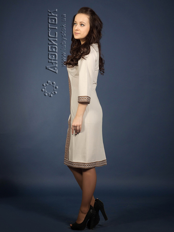 Вишите модне плаття ЖП 76-48 кофейного забарвлення стане чудовим доповненням гардеробу кожної жінки, також буде чудовим діловим вбранням. Стримана довжина сукні за коліна та рукав в три четверті дає можливість одягти таке вбрання жінці з будь-яким типом фігури. А колоритна вишивка в кофейних тонах стане чудовим акцентом, який привертатиме до себе увагу і нікого не залишить байдужим.