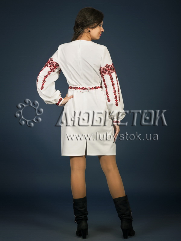 Чудове вишите плаття хрестиком у класичних мотивах українського стилю з геометричним орнаментом.