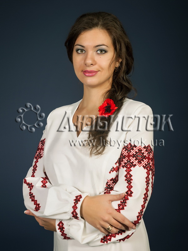 Вишита сукня хрестиком ЖПВ 2-1. Святкова та гарна сукня. Має сучасно-традиційний вигляд і саме це робить її оригінальною. Пошита з білої тканини тіар. Вишивка виконана хрестиком червоними та рожевими акриловими нитками, геометричним візерунком. Рукав довгий, оригінальний виріз. Чудово підійде для урочистих подій та національних свят. Надасть вам оригінального та святкового вигляду.