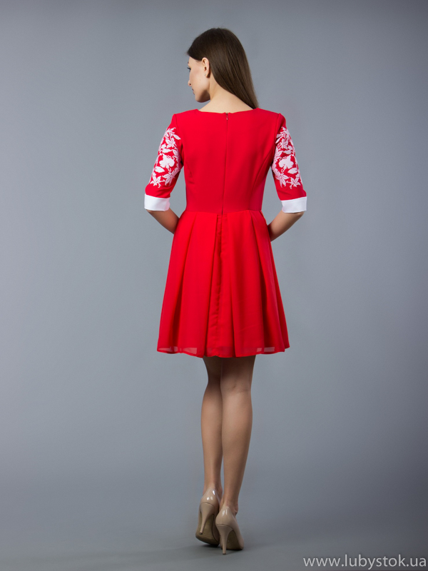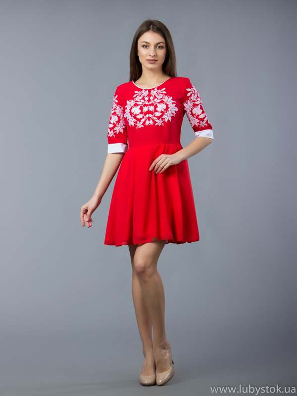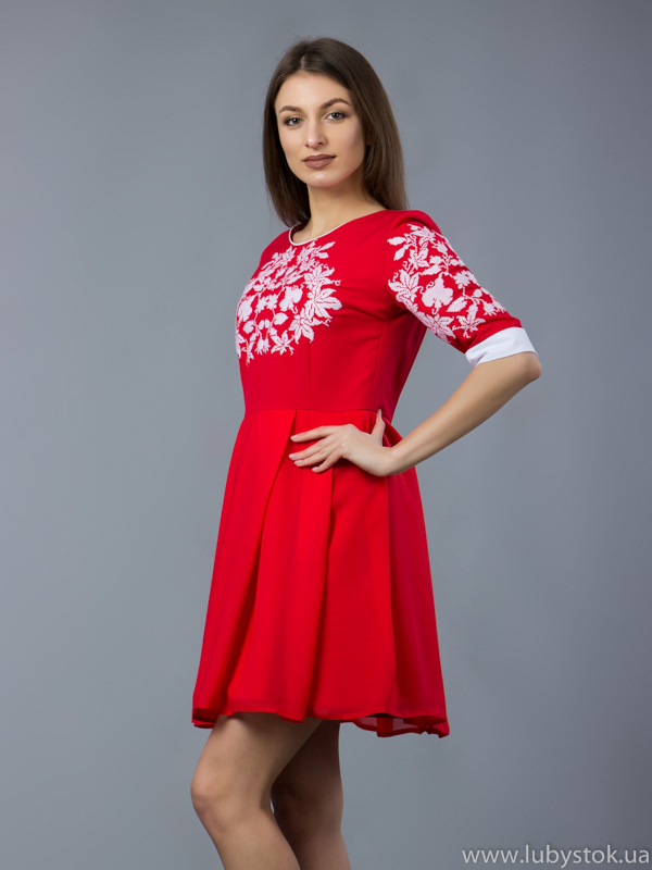 Вишита сукня хрестиком ЖПВ 54-1. Дуже гарна та модна сукня. Оригінальний фасон та колір тканини надає цьому платтю особливий та яскравий вигляд. Стиль сукні - сучасний на тканині тіар та шифон червоного кольору. Вишита хрестиком, білими акриловими нитками. Візерунок вишивки - рослиний. Ця сукня чудово підійде для святкових та урочистих подій. Надасть вам особливого та стильного вигляду. В ній ви будете мати неперевершений вигляд та отримаєте безліч комплиментів.