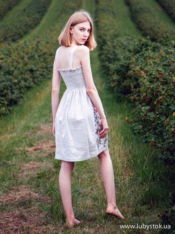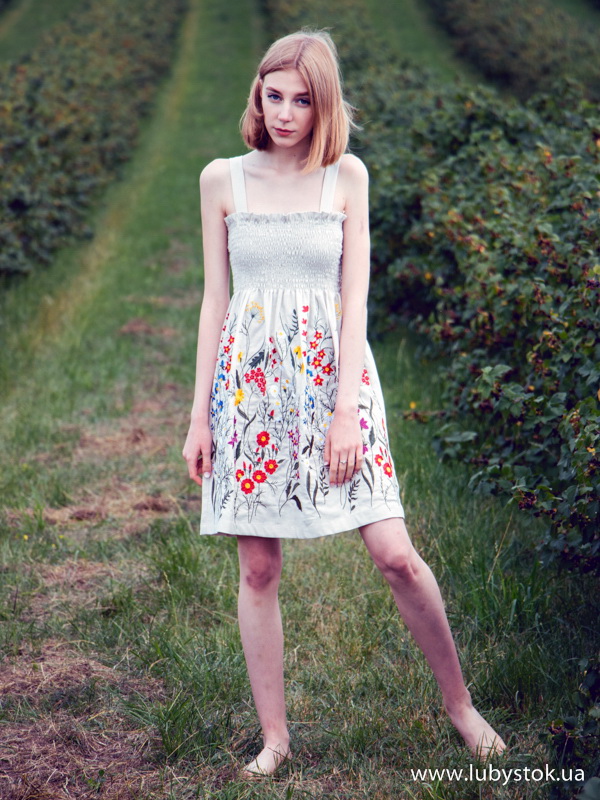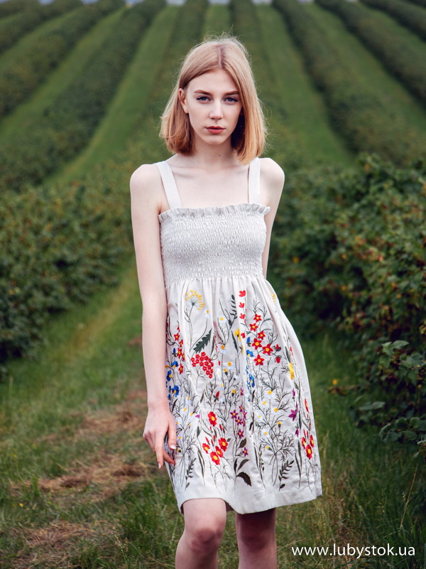 Чудове вишите плаття гладдю у класичних мотивах українського стилю з рослинним орнаментом - www.lubystok.ua .