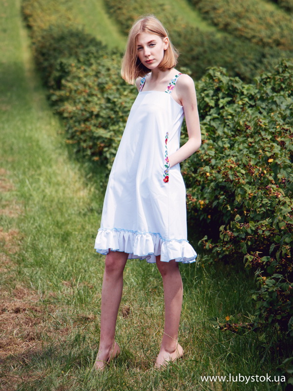 Чудове вишите плаття гладдю у класичних мотивах українського стилю з рослинним орнаментом - www.lubystok.ua .