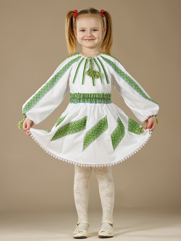 Вишитий костюм для дівчинки - українська вишиванка - модель ЖК 53-15. Завдяки фасону та вишивці має оригнальний та особливий вигляд. Цей костюмчик складається з вишиванки - ЖБ 68 та вишитої спідниці - С 33. Стиль сучасний з традиційними мотивами. Тканина біла сорочкова. Вишивка ткана, зеленого кольору. Вишиванку і спідницю можна носити як разом, так і окремо. Цей костюмчик чудово підійде для будь яких урочистих та святкових подій, а також для творчих виступів у дитячому садочку чи школі. Ваша донечка в цьому костюмі буде виглядата по особливому. Купуйте вишитий костюм для дівчинки у нашому інтеренет-магазині www.lubystok.ua - не пожалієте, і подаруєте радість як собі, так і вашій доньці!