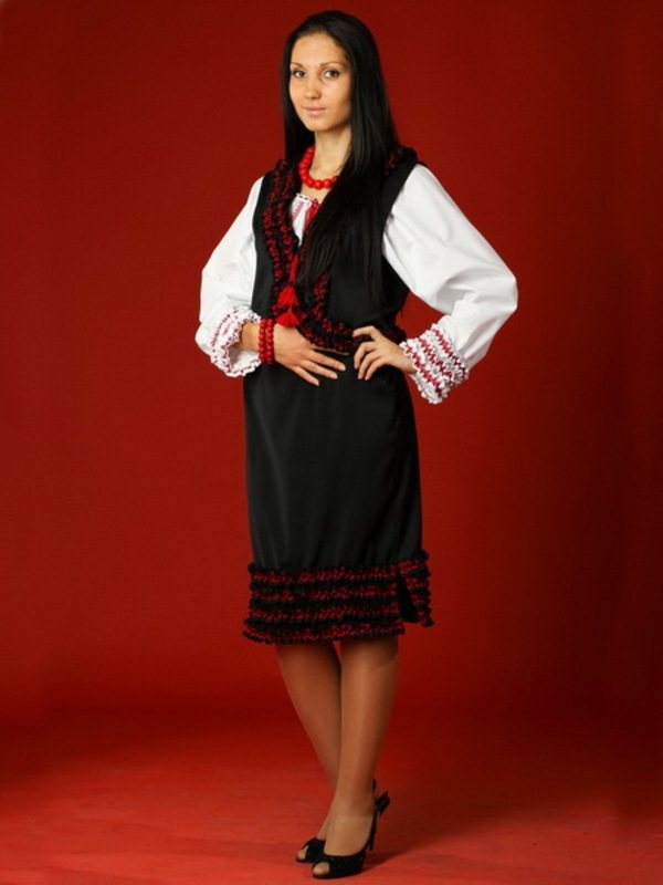 Вишитий жіночий костюм - українська вишиванка - модель ЖК 13. Святковий та в одночас діловий костюм в сучасному стилі з тридиційним мотивом. Чорно-біло-червоні кольори надають особливого та виразного вигляду. Цей костюм складається з трьох елементів: блуза ЖБ 123-11, спідниця С 46-6 та камізелька КМ 8-6, які гарно гармонують між собою та чудово виглядають по окрему. В ньому ви виглядатимете неперевершено.