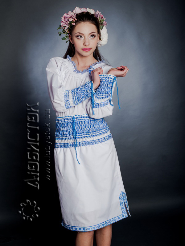 Вишитий модний жіночий костюм ЖК 65-32 (Блуза: ЖБ95-32, Спідниця: С22-32) з традиційними мотивами, що складається з блузи та спідниці прямого крою. Ніжні відтінки блакитного і білого кольору доповнюють цікавий фасон. Манжети на довгих рукавах, та пояс стягнуті резинкою, що не лише є дуже функціональним, але й створює неабиякий декоративний ефект. А виріз продуманий так, що можна відповідно до настрою та події, оголяти або ж приховувати плечі. Відтак ця модель стане чудовим доповненням гардеробу впевнених в собі красунь, які водночас хочуть бути стильними та вишуканими. Спідниця довжиною «за коліна» не є обтяженою декоративними елементами, що створює чудовий баланс загального образу. Ви будете задоволені своїм вибором!