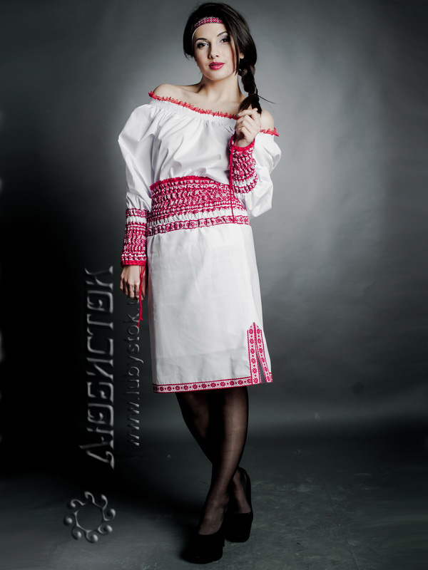 Вишитий модний жіночий костюм ЖК 65-37 (Блуза: ЖБ95-37, Спідниця: С22-37) з традиційними мотивами в оригінальній інтерпретації наших дизайнерів. Цей варіант пропонується у традиційних біло-червоних тонах, що додасть колоритності кожній жінці чи дівчині. Комплект складається з блузи та спідниці. Манжети на довгих рукавах блузи, та пояс стягнуті резинкою, що не лише є дуже функціональним, але й створює неабиякий декоративний ефект. А виріз продуманий так, що можна відповідно до настрою та події, оголяти або ж приховувати плечі.