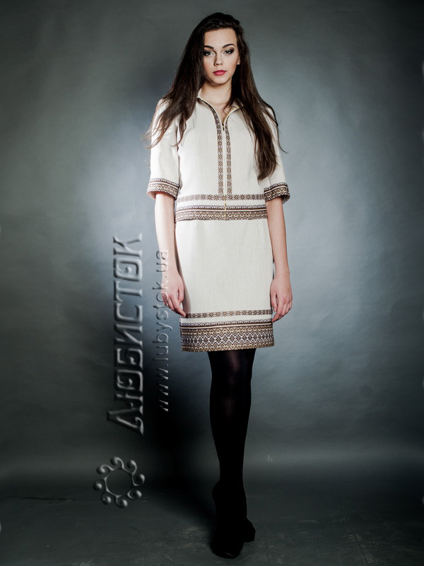 Вишитий модний жіночий костюм ЖК 68-62 (Жакет: ПЖ4-62, Спідниця: С4-62) у бежево-кофейних тонах. Він складається з жакету на блискавці з укороченим до ліктя рукавом, та спідниці прямого крою. У нас ви можете придбати як цілий комплект, так і окремо кожну деталь. Жакет виконаний у класичному стилі з тендітною вишивкою по краю рукавів. Спідниця прямого крою з таким же оздобленням як і на верхній частині костюма. Цей комплект підійде і для офісного дрескоду і для прогулянки чи урочистостей. Завершити образ можна чудовими аксесуарами для волосся чи іншими елементами, які можна підібрати, завітавши в інші розділи нашого магазину. Залишайтесь завжди неповторною та елегантною.
