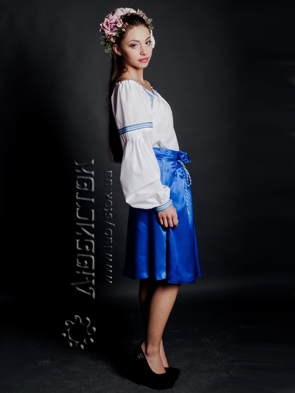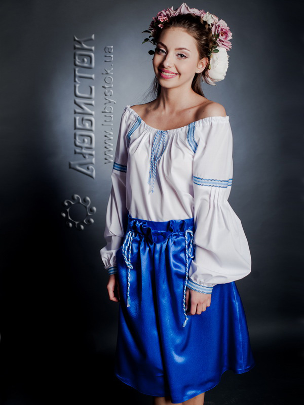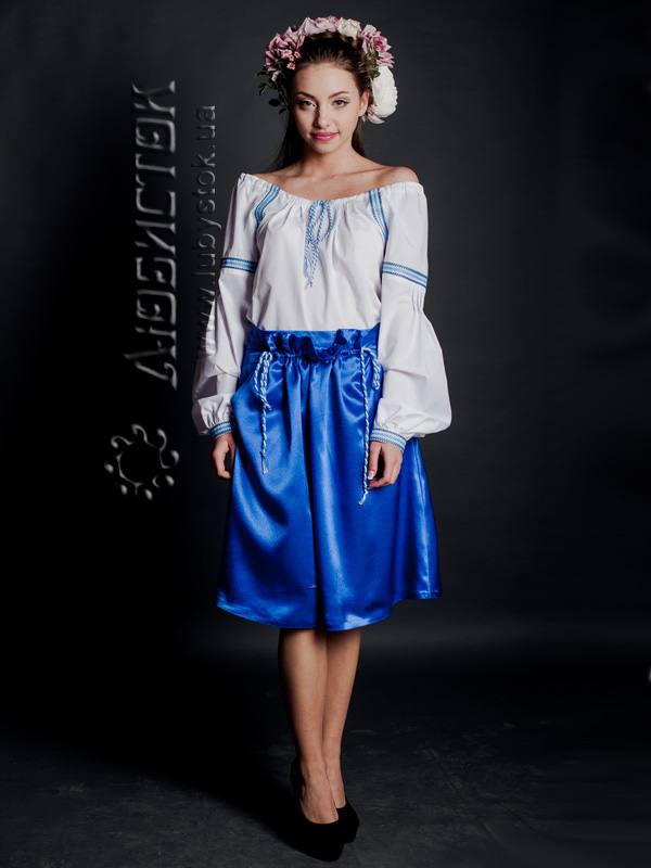 Вишитий модний жіночий костюм ЖК 72-36 з традиційними мотивами для підкреслення жіночої ніжності та краси. Комплект складається з блузи та спідниці (Блуза: ЖБ102-36, Спідниця: С21), які також чудово можуть виступати цілком незалежними елементами Вашого гардеробу. Неймовірної краси вишита жіноча блуза задумана нашими дизайнерами у витонченому дизайні, що робить акцент на оголені плечі. Такий образ нікого не залишить байдужим. Оздоблення тендітним вишитим орнаментом в голубих тонах лягло легкими лініями від плечей до манжетів. Блуза підійде для кожної пори року, адже стане чудовим доповненням до будь-якого образу. Спідниця з королівського атласу вільного крою «за коліна» має стяжку по лінії талії. Такий фасон підійде кожній жінці та додасть впевненості у кожному русі. Залишайтесь завжди ніжною та чарівною, а ми постараємось додати Вам неповторності!