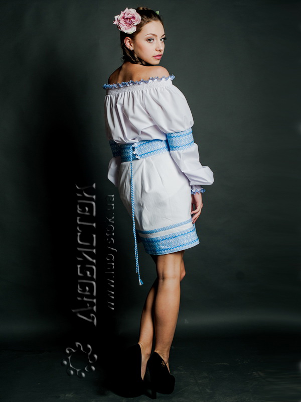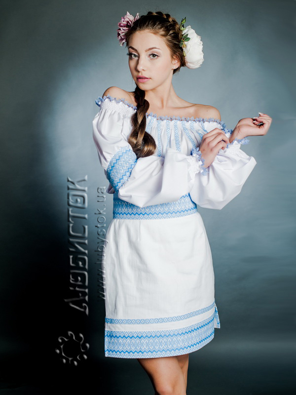 Вишитий модний жіночий костюм ЖК 78-55, що складається з блузи та спідниці. Неймовірної краси вишита жіноча блуза. Витончений дизайн, що робить акцент на оголені плечі нікого не залишить байдужим. Оздоблення тендітним вишитим орнаментом в голубих тонах лягло легкими лініями від плечей до манжетів. Спідниця простого прямого крою, також вкінці оздоблена широкою вишивкою. І вишита блуза і спідниця може бути як самостійною частиною вашого гардеробу, так і чудово виступатиме у запропонованій комбінації. Таке вбрання буде доречним для кожної пори року та обов’язково приверне увагу оточуючих. Будьте неперевершеною і весь світ ляже до Ваших ніг!