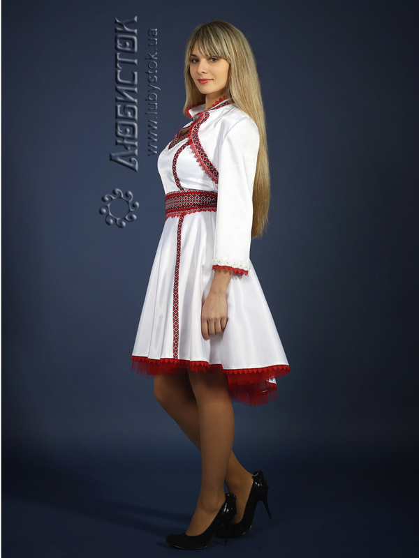 Святковий або весільний вишитий жіночий костюм ЖК 80-63 (вишите плаття ЖП 72-63 та болеро Б6-63), що складається з сукні, вишитого поясу-корсета та болеро. Такий костюм зробить вас королевою на урочистій події.