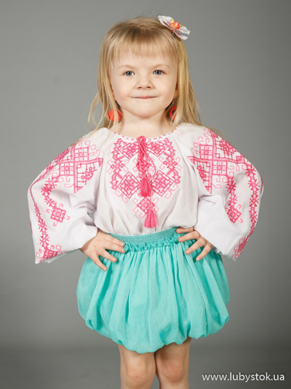 Дитяча вишита блуза - українська вишиванка для дівчинки хрестиком ЖБВ 14-4-d - www.lubystok.ua.