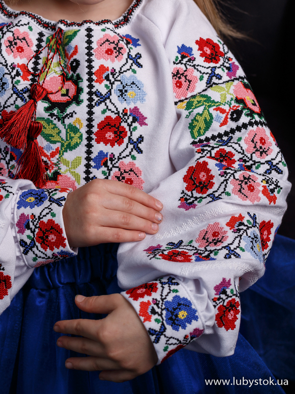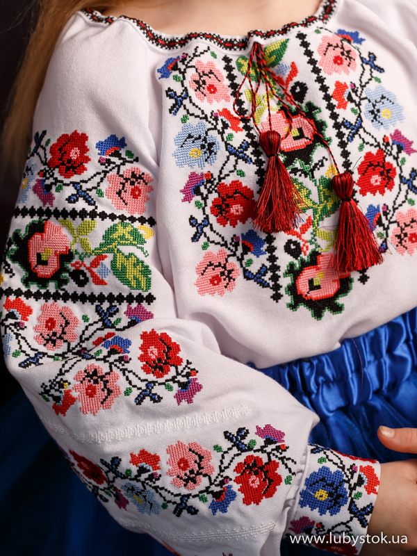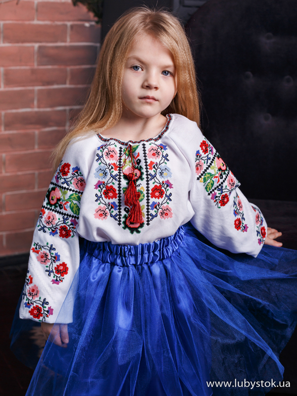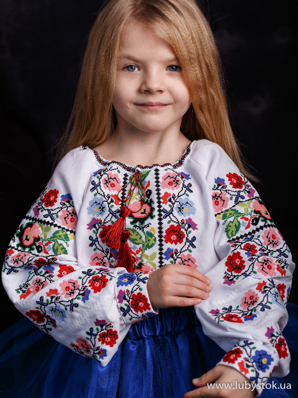 Дитяча вишита блуза - українська вишиванка для дівчинки хрестиком B-063-01-d - www.lubystok.ua.