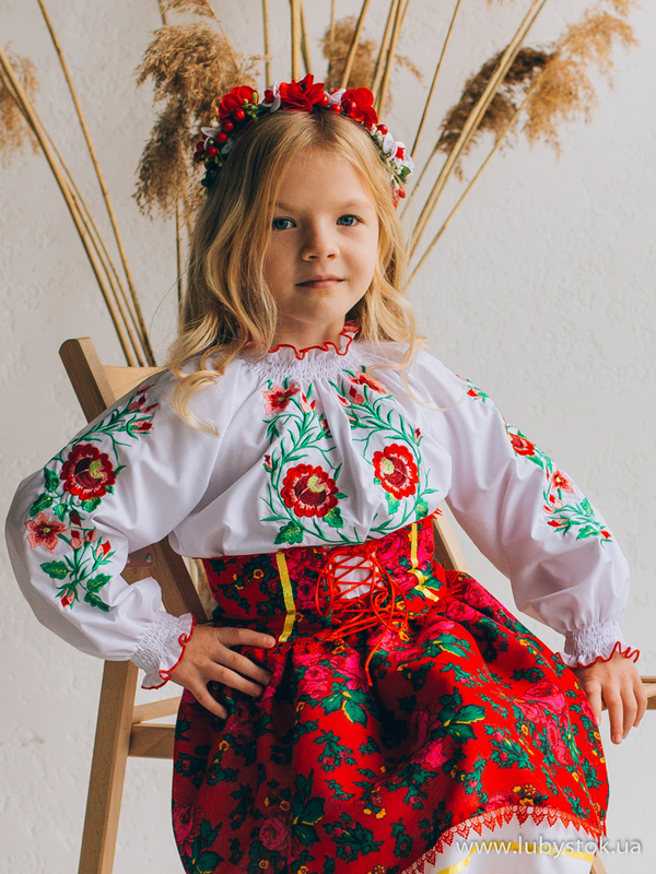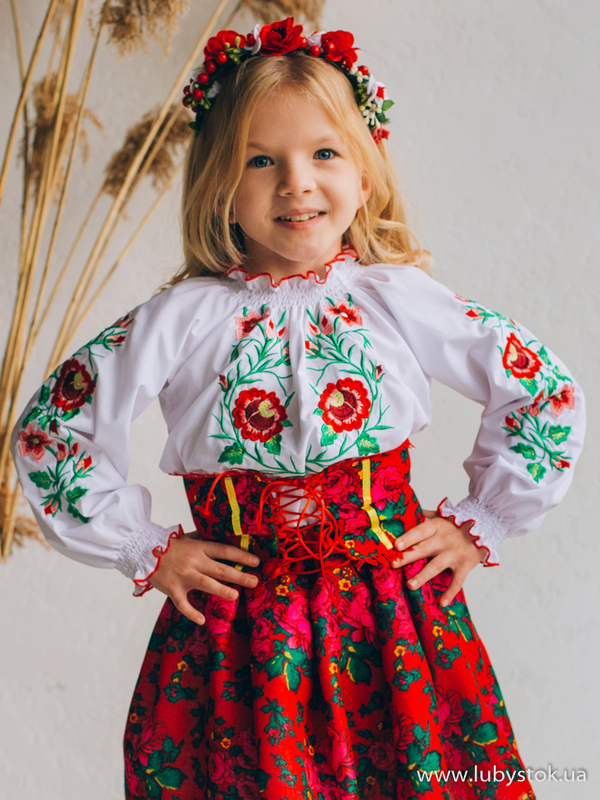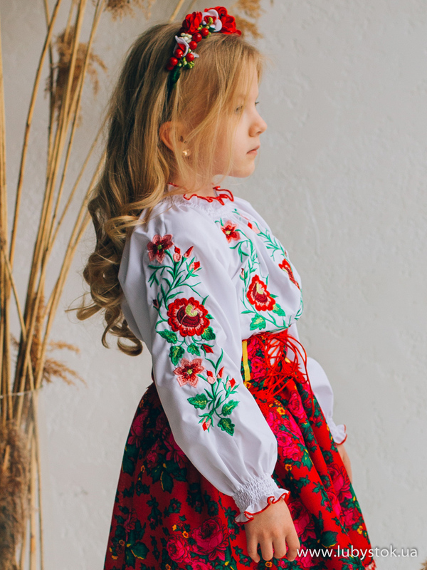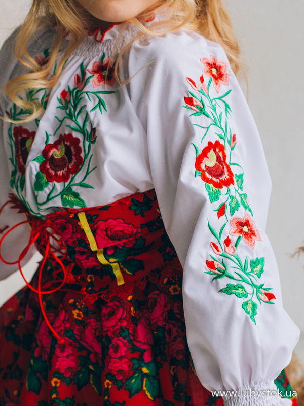 Дитяча вишита блуза з квітами - українська вишиванка для дівчинки гладдю B-078-01-d - www.lubystok.ua.