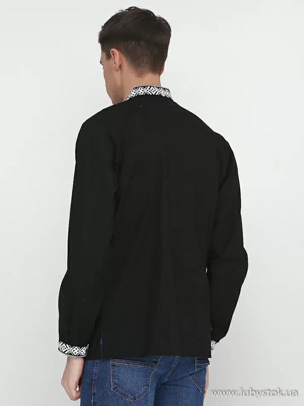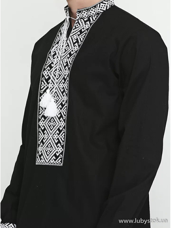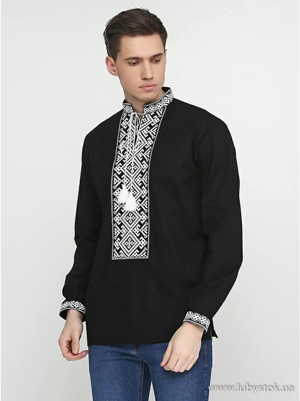 Вишита сорочка чоловіча - вишиванка хрестиком С 2-2 на натуральному льоні. Традиційний український крій сорочки на довгий рукав з коміром-стійкою. Вишиванка одягається через голову. Вишивка на грудях, кінцях рукавів, комірі-стійці.