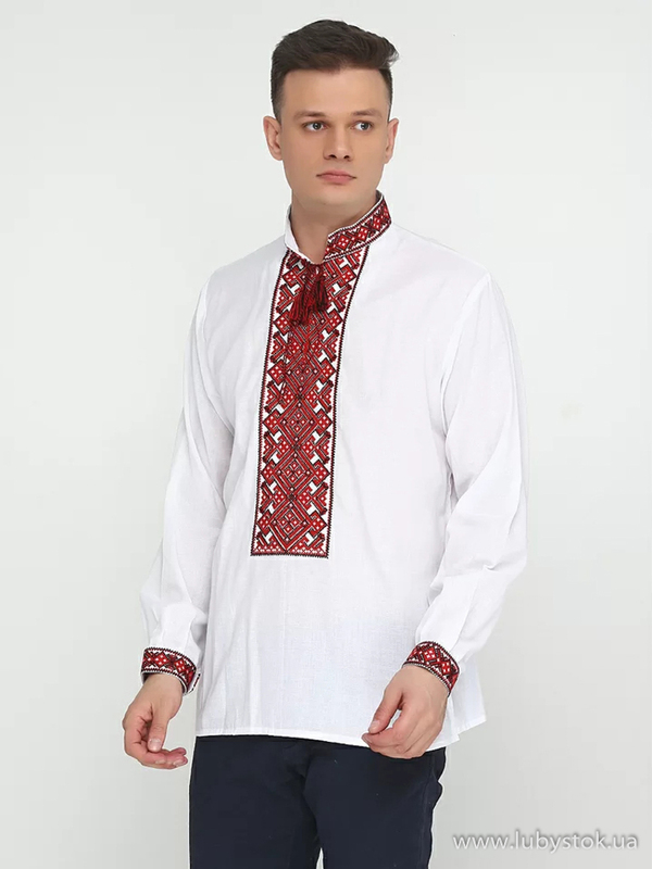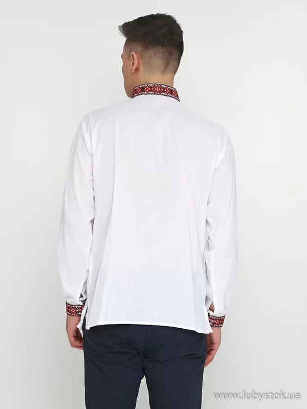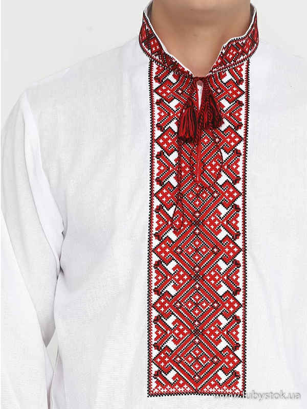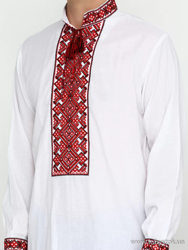Вишита сорочка чоловіча - вишиванка хрестиком ЧСВ 3-1. Традиційний український крій сорочки на довгий рукав з коміром-стійкою. Вишиванка одягається через голову. Вишивка на грудях, кінцях рукавів, комірі-стійці.