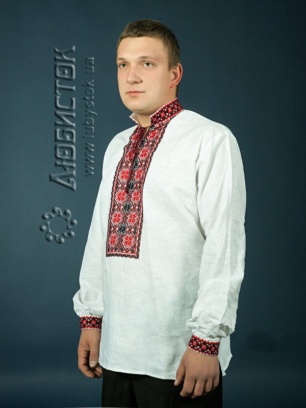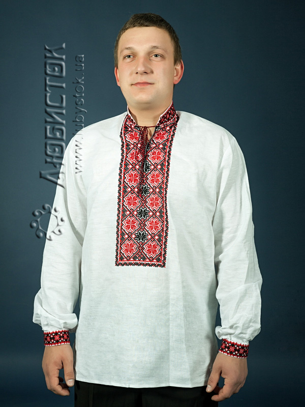 Вишита сорочка чоловіча - вишиванка хрестиком ЧСВ 4-2. Традиційний український крій сорочки на довгий рукав з коміром-стійкою. Вишиванка одягається через голову. Вишивка на грудях, кінцях рукавів, комірі-стійці.