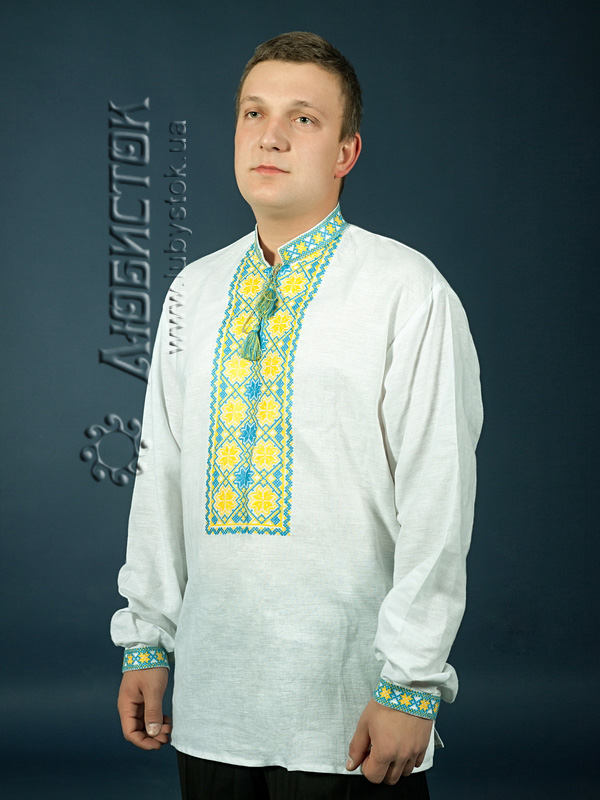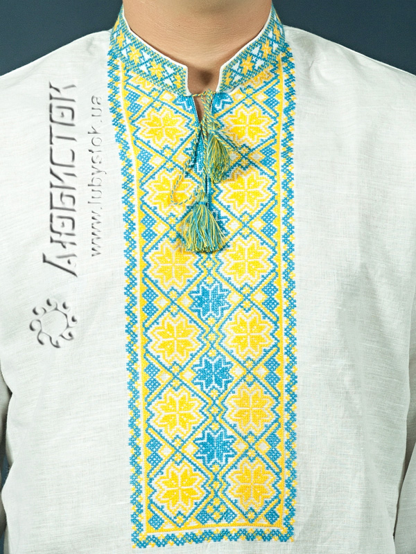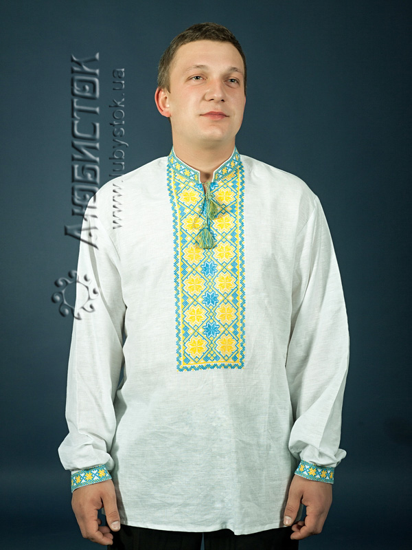 Вишита сорочка чоловіча - вишиванка хрестиком ЧСВ 4-3. Традиційний український крій сорочки на довгий рукав з коміром-стійкою. Вишиванка одягається через голову. Вишивка на грудях, кінцях рукавів, комірі-стійці.