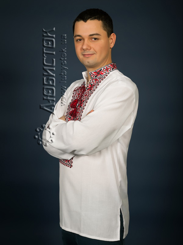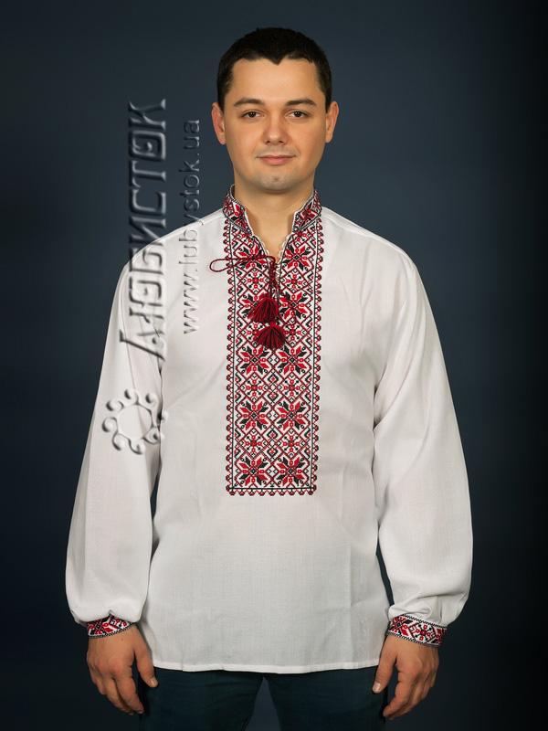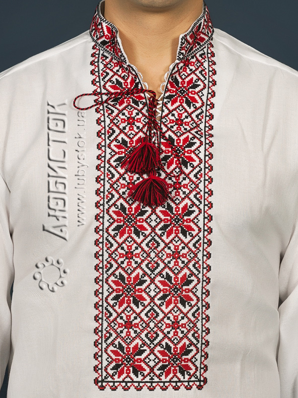 Вишита сорочка чоловіча хрестиком - вишиванка ЧСВ 12-1 на домотканному полотні або натуральному льоні. Традиційний український крій сорочки на довгий рукав з коміром-стійкою. Вишивка на грудях, кінцях рукавів, комірі-стійці. Виконана хрестиком червоними та чорними акриловими нитками, геометричним візерунком. Оригінальний дизайн зробить вас неповторним та вирізнить з натовпу.