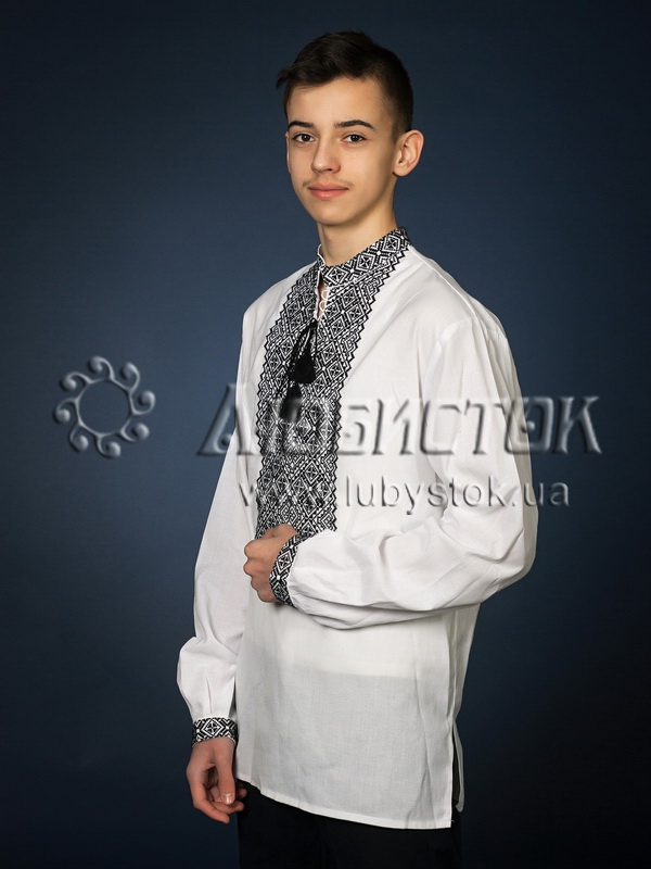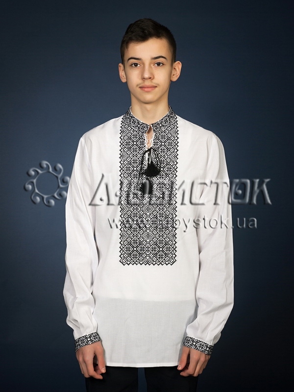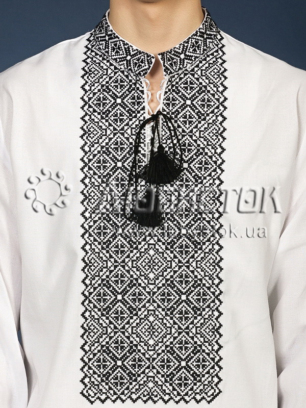 Вишита сорочка чоловіча - вишиванка хрестиком ЧСВ 18-2. Візерунок-оберіг акриловими нитками. Традиційний український крій сорочки на довгий рукав з коміром-стійкою. Вишивка на грудях, кінцях рукавів, комірі-стійці.