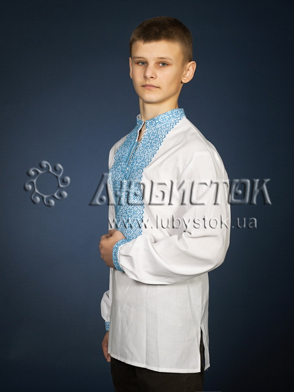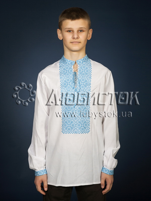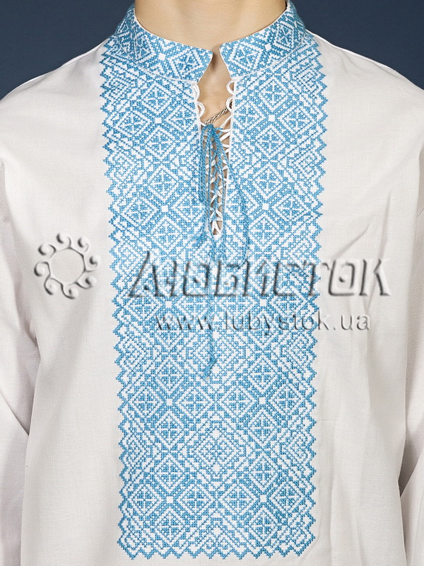Вишита сорочка чоловіча - вишиванка хрестиком ЧСВ 18-6. Візерунок-оберіг акриловими нитками. Традиційний український крій сорочки на довгий рукав з коміром-стійкою. Вишивка на грудях, кінцях рукавів, комірі-стійці.