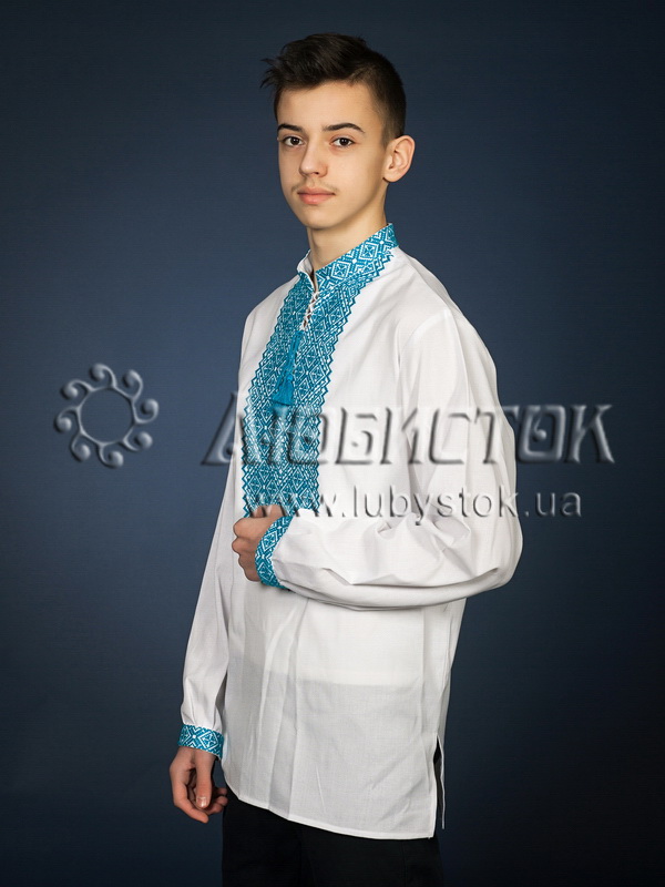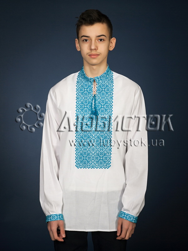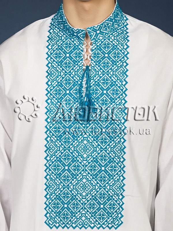Вишита сорочка чоловіча - вишиванка хрестиком ЧСВ 18-8. Візерунок-оберіг акриловими нитками. Традиційний український крій сорочки на довгий рукав з коміром-стійкою. Вишивка на грудях, кінцях рукавів, комірі-стійці.