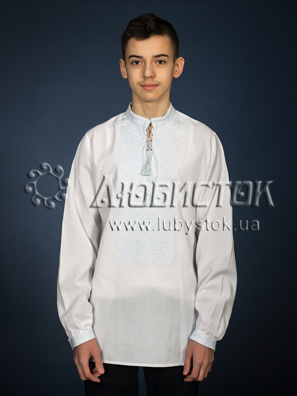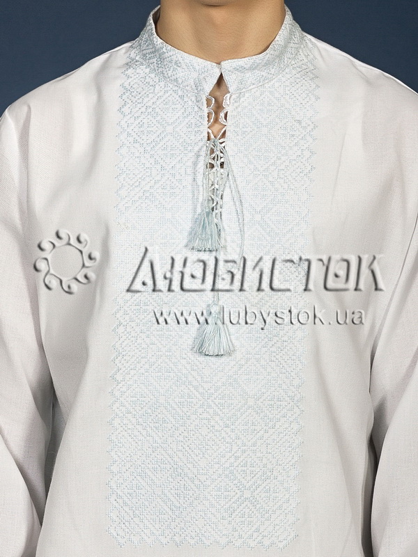 Вишита сорочка чоловіча - вишиванка хрестиком ЧСВ 18-9. Візерунок-оберіг акриловими нитками. Традиційний український крій сорочки на довгий рукав з коміром-стійкою. Вишивка на грудях, кінцях рукавів, комірі-стійці.