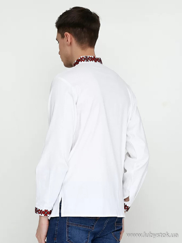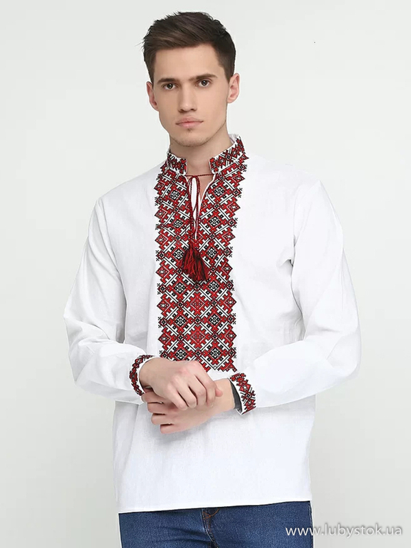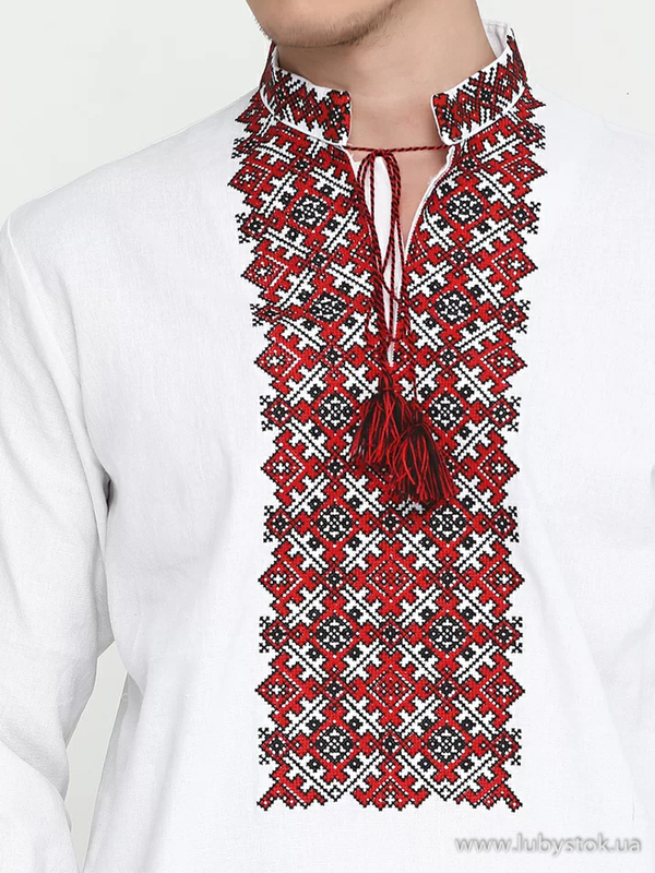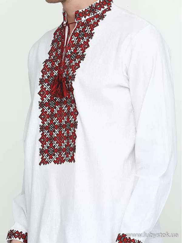 Вишита сорочка чоловіча - вишиванка хрестиком С 19-1 на домотканному полотні або натуральному льоні. Традиційний український крій сорочки на довгий рукав з коміром-стійкою. Вишивка на грудях, кінцях рукавів, комірі-стійці.
