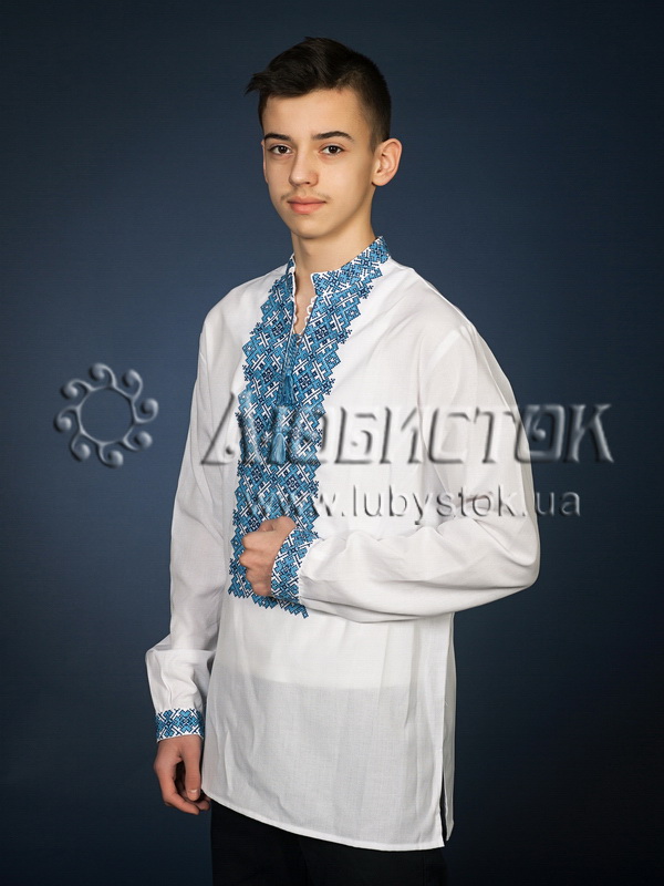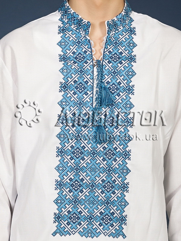 Вишита сорочка чоловіча - вишиванка хрестиком С 19-2 на домотканному полотні або натуральному льоні. Традиційний український крій сорочки на довгий рукав з коміром-стійкою. Вишивка на грудях, кінцях рукавів, комірі-стійці.