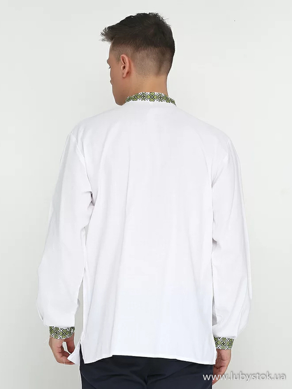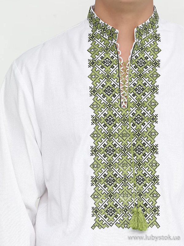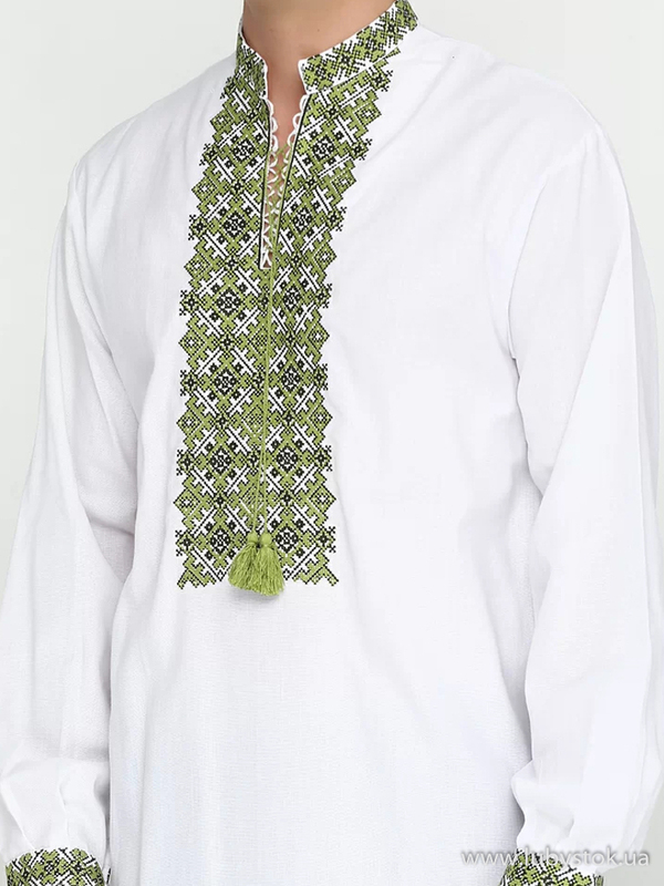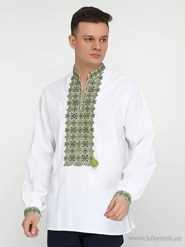 Вишита сорочка чоловіча - вишиванка хрестиком С 19-4 на домотканному полотні або натуральному льоні. Традиційний український крій сорочки на довгий рукав з коміром-стійкою. Вишивка на грудях, кінцях рукавів, комірі-стійці.