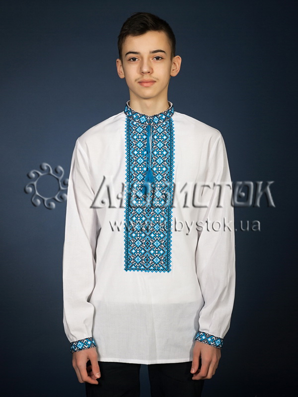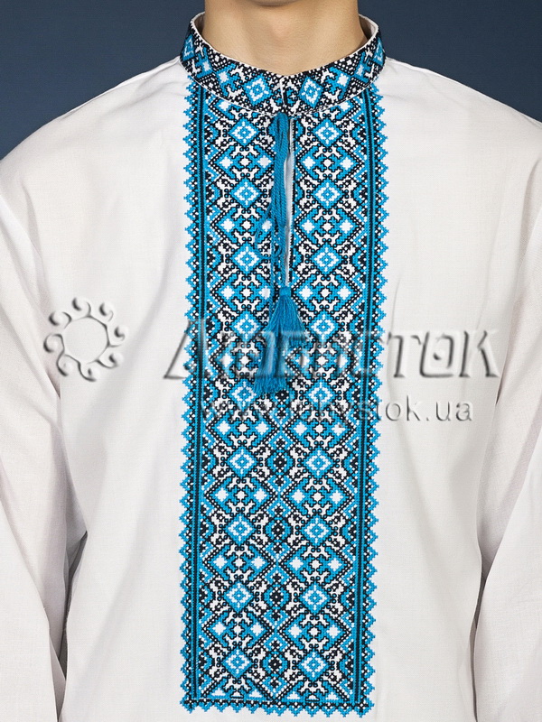 Вишита сорочка чоловіча - вишиванка хрестиком С 20-3 на домотканному полотні або натуральному льоні. Візерунок-оберіг акриловими нитками. Традиційний український крій сорочки на довгий рукав з коміром-стійкою. Вишивка на грудях, кінцях рукавів, комірі-стійці.