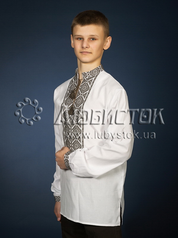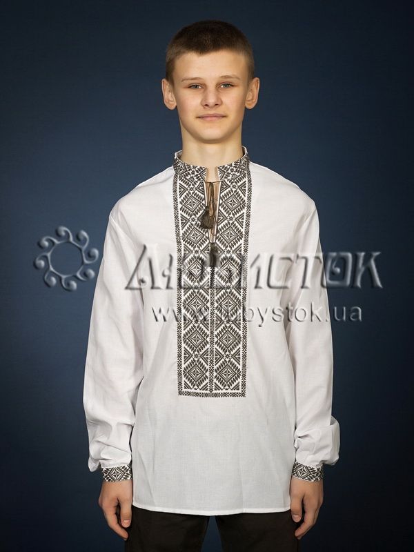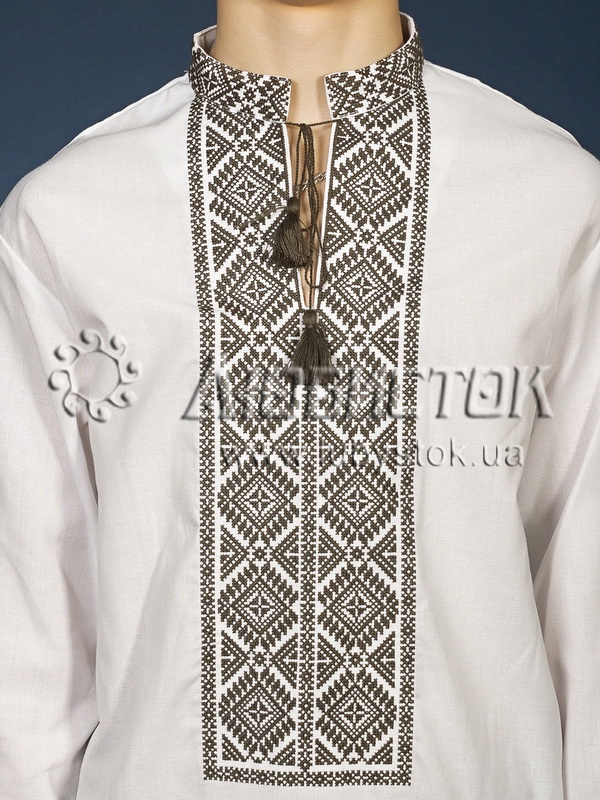 Вишита сорочка чоловіча - вишиванка хрестиком ЧСВ 21-5. Візерунок-оберіг акриловими нитками. Традиційний український крій сорочки на довгий рукав з коміром-стійкою. Вишивка на грудях, кінцях рукавів, комірі-стійці.
