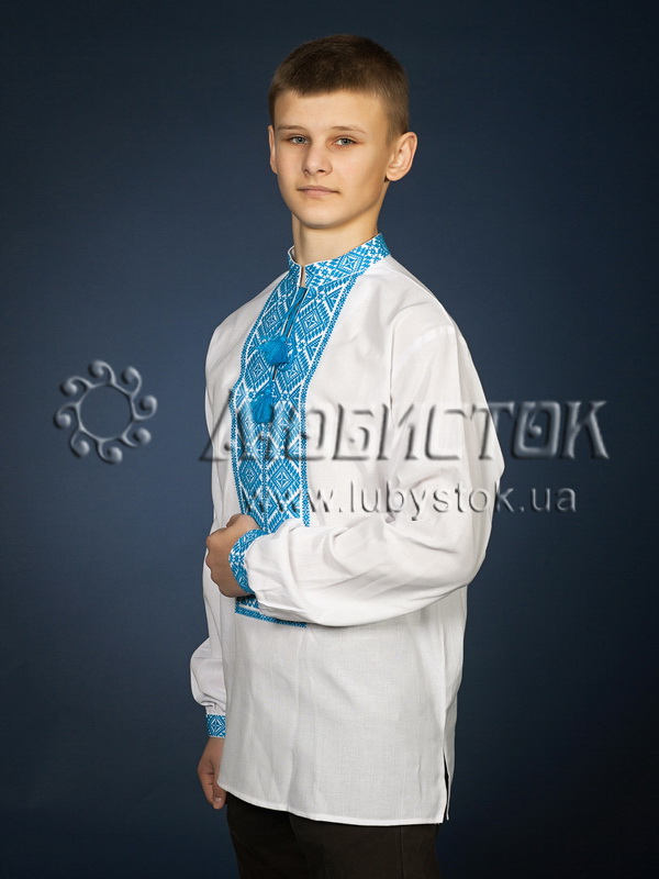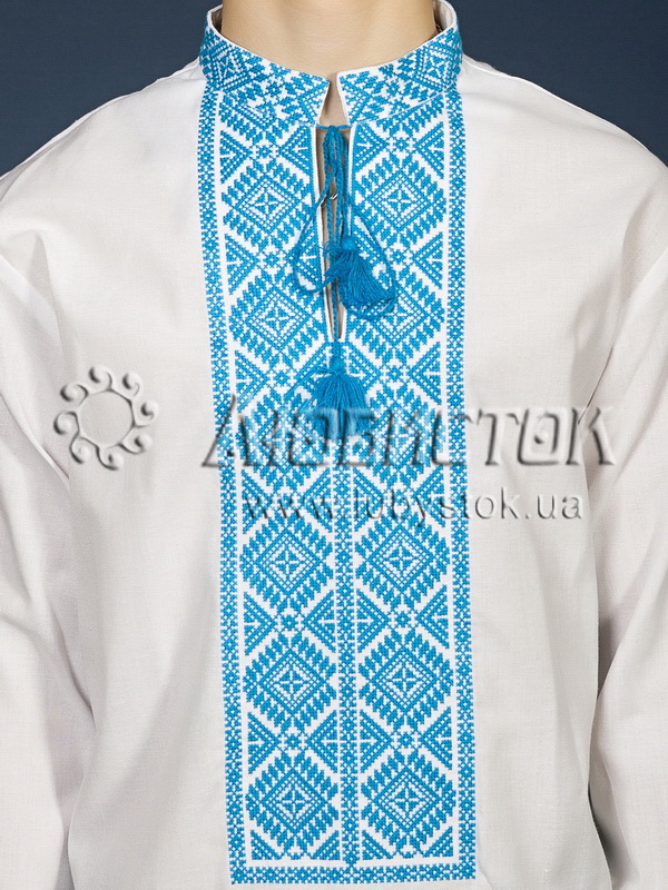Вишита сорочка чоловіча - вишиванка хрестиком ЧСВ 21-6. Візерунок-оберіг акриловими нитками. Традиційний український крій сорочки на довгий рукав з коміром-стійкою. Вишивка на грудях, кінцях рукавів, комірі-стійці.