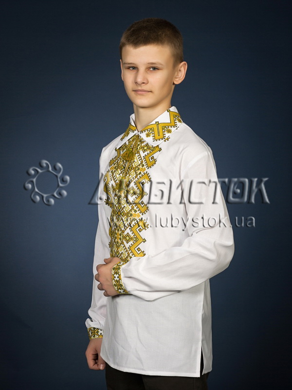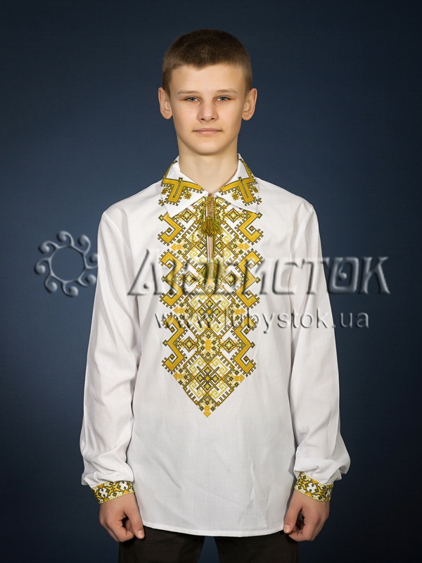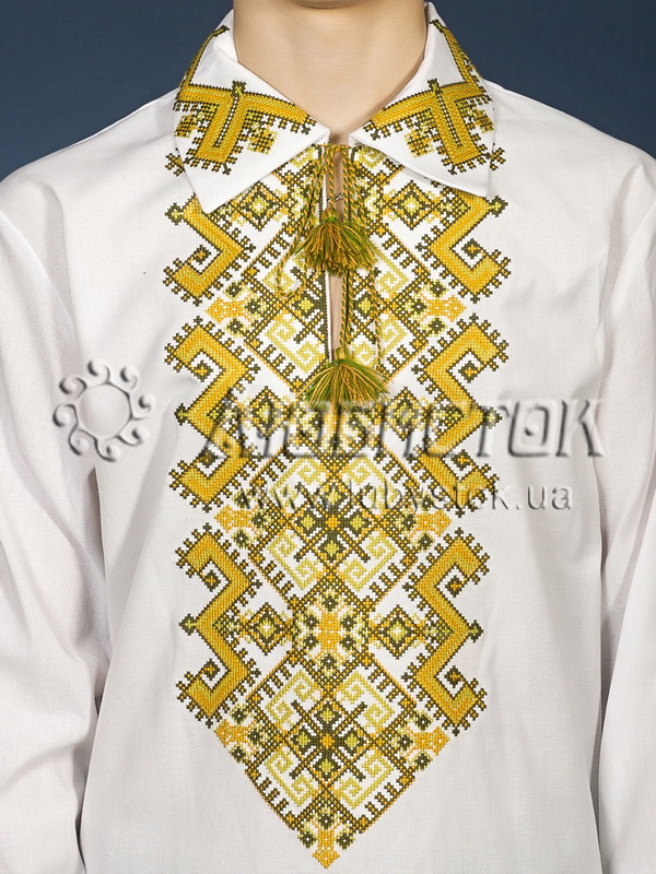 Вишита сорочка чоловіча - вишиванка хрестиком С 24-6 на домотканному полотні або натуральному льоні. Візерунок-оберіг в українському гуцульському стилі акриловими нитками. Сучасний крій сорочки на довгий рукав з відкладним коміром. Вишивка на грудях, кінцях рукавів, комірі.